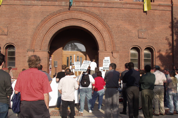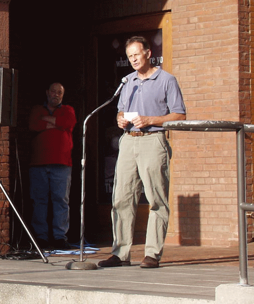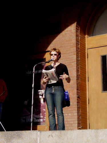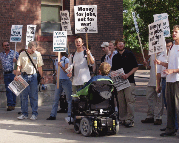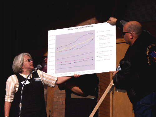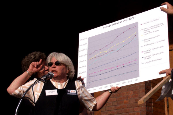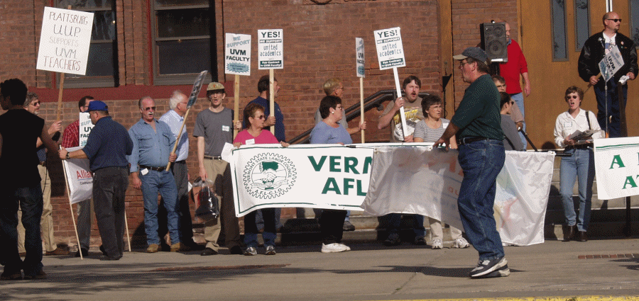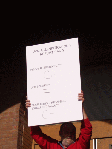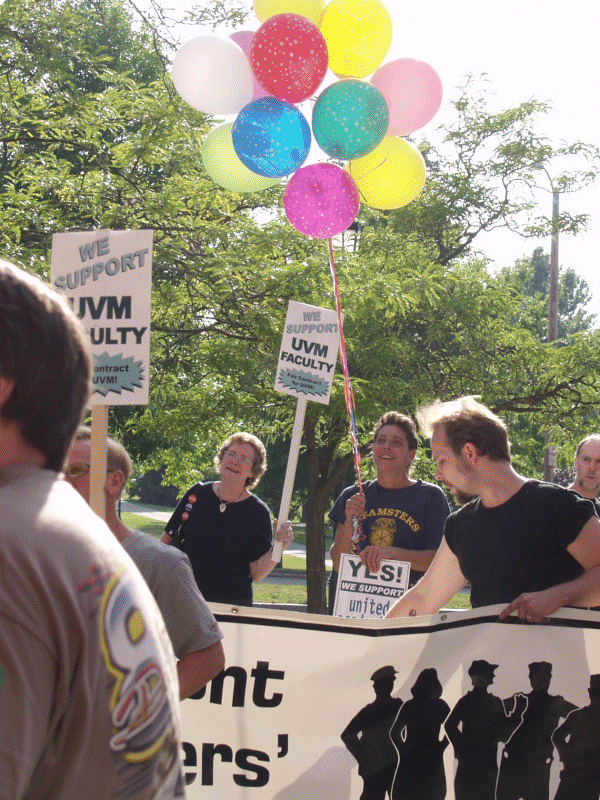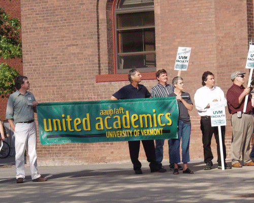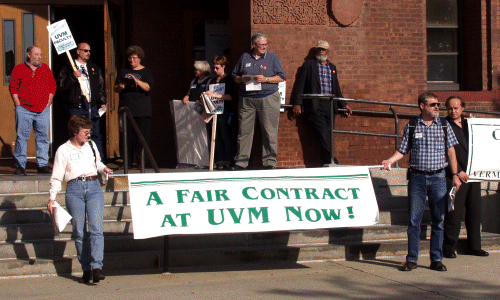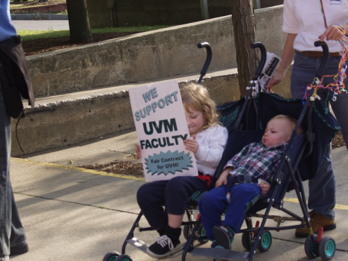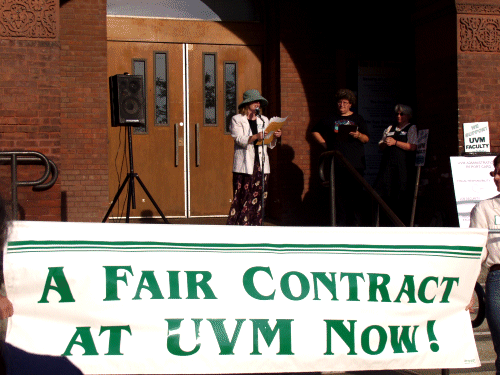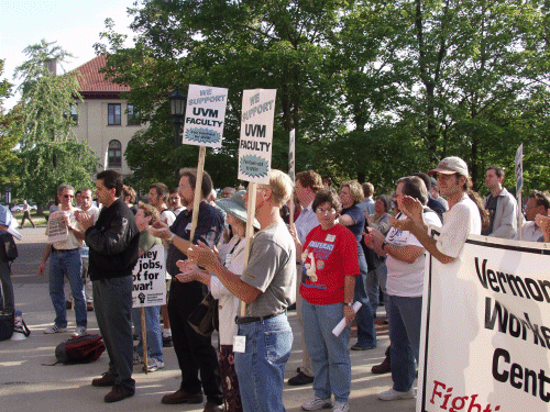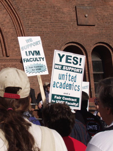 The following photographs were taken on Friday, September 13, 2002, at the United Academics (UA) - AFT/AAUP Rally for a Fair Contract. The rally was held in front of the Royall-Tyler Theatre on the University of Vermont Campus, Burlington, Vermont. The rally followed a march from the Holiday Inn on Williston Road. Photographs are of the crowd and speakers which include members of organized labor, faculty, staff and students.