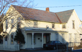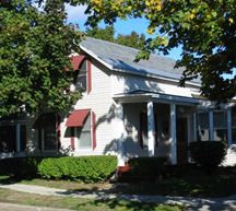 As with the previous address, this building currently has a similar footprint to the 1869 Beers map. Cosmetic changes, and the addition of a one level flat roof addition at the rear, make it difficult to determine if this is the original structure. Little information is found regarding this location. The 1881 Directory lists a Binois here, but the name does not appear in years prior or subsequent. Unlike other houses on this block, this address revealed little history. The 1890 Hopkins map lists J.W. Hayes at this location. As Hayes owned other properties in town, it is possible this housed laborers by 1890.