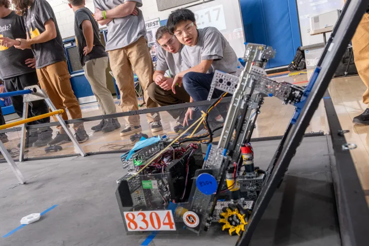 A cacophony of whirring motors, timing buzzers, and shouts of encouragement filled the Lamoille Union High School gymnasium this past weekend during the 2024 Vermont First Tech Challenge (FTC) as 19 teams from across the state took center stage for the annual robotics competition.