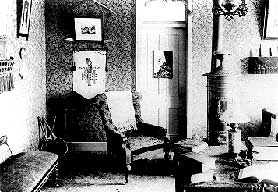 Right: Old Mill interior, student room, top floor. Photograph circa 1890. (UVM Archives)