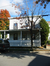 The 1869 Beers Atlas Map shows four buildings in a row with massing similar to this one. Of the four, only this survives with a similar footprint. The map shows B. Riley at this location, and the 1869 Directory states the Bruno Riley lived on "Rose st. Near North st." Riley was an employee at L. Barnes and Co., a lumber company, which would fit with the labor class of this area. The 1881 directory shows Louis and Lyman Steady residing at this address. Vermont Sites and Structures states this building was constructed c. 1885.1 It is possible that this is a rebuild with foundation elements retained, but it is also likely to be one of the original four structures on this side of the street.