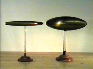 | These large brass "footballs" where probably used to demonstrate that the distribution of static charge on the surface of a conductor depends on the curvature of the surface. |