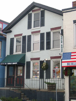 According to the Burlington Historic Sites and Structures Survey (1) this two and a half story, three by two bay structure was built in 1860, in the Greek Revival style, gable-front, with a wood frame and brick veneer. It is typical of many domestic vernacular buildings of this era, though has increased significance in this context, as it is one of only two structures from this period remaining on the street.