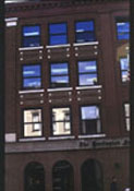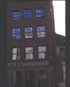 Discrepancies in research for this section of the block turned up as well. David Blow's research indicated that it may have been built as early as 1848, or possibly as early as 1833, with its party wall being the premise for the height of the c. 1833 Free Press Building. The Burlington Historic Sites and Structures Survey notes that this section was built between 1854 and 1865 for Gardner S. Blodgett and his stove and plumbing business. My review of the maps and available Burlington City Directories and Burlington Free Press articles suggests that the building does predate 1853, but was certainly the subject of a 1869s or 1870s facade update. However, it does not appear to predate 1833, as the original Free Press Office was later expanded to reach the height of this building (5). During the 1853-1869 period of investigation, G.S. Blodgett ran a successful business, and remained at this location until they moved to Bank Street in 1903 (6). The company made steel ovens and stoves on the upper floors and sold them on the ground level. They also sold iron goods, tinware, and other related goods. The 1869 Sanborn map marks the store as "tinware." In the 1880s Blodgett also branched out into plumbing and heating. The facade was altered in the 1920s and again in the 1970s.
