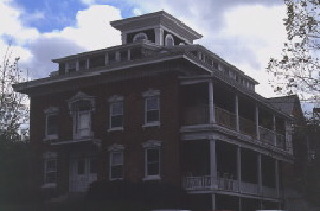 Built c. 1867, for Stephen Herrick, a wealthy dry goods merchant on Church Street, this square, Italianate, brick house was built on the site of his previous house (1). Occupying a prestigious location at the southwest corner of College and Willard Streets, it has cast iron window heads, elaborate door hoods, an ornate cornice, and cupola added to his house. A contributing structure to both the Main Street-College Street Historic District and the South Willard Street Historic District (2), the main block is two and a half stories, with four bays on each side, and walls fourteen inches thick (3). The shed-roof dormers on the north and east sides of the shallow hipped roof are the result of its 1932 renovation and conversion to apartments (4).
