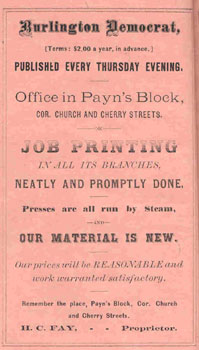 Ad for the Burlington Democrat, from the 1871-72 Burlington City Directory.