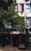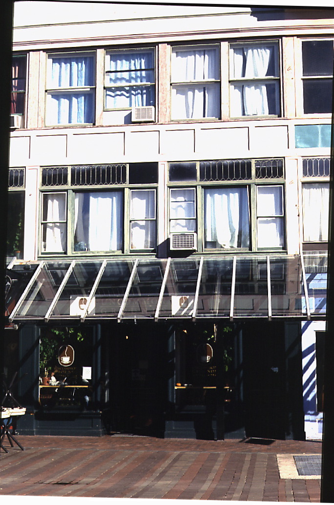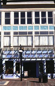 The block formerly known as the Nelson Block immediately adjoins it to the south and was built between 1853 and 1869, based on a comparison of the 1853 Presdee and Edwards, and 1869 Sanborn maps. Originally a furniture store built by Henry J. Nelson, the first time that it appears in the Burlington City Directory is the 1867-68 edition, suggesting that construction was completed around 1866 or 1867. The Nelson's operated a furniture store here for about forty years. Since then it housed a variety of businesses. The two blocks were joined together by a c. 1925 polychrome facade of aluminum, mirrors, brick, plastic and glass, but the original Italianate facade with cast iron ornamental lintels can be seen on the Cherry Street facade (3). The 1920s facade is a good example in its own right of early twentieth century commercial block architectural fashion. Both blocks continue to have commercial space on the first floor with apartments above.