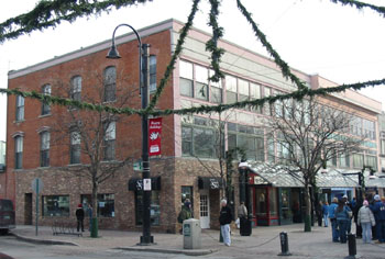 According to the Burlington Historic Structures and Sites Survey, this c. 1860 commercial block on the southeast corner of Church and Cherry Streets was built for Payn, a Burlington lock and gunsmith (1). He worked in a storefront below and lived above. However, it may date to after 1862, as the 1862 map of Burlington notes that this site was the location of a marble works. It first appears on the 1869 Sanborn map as "Payn's Block." The Survey mentions that the building may have been built by George Barrows. During the 1870s the block housed the book store of P.D. Ballou. Later uses include the Wheeler and Wilson sewing machine store (1890s), the C. Marcelais general news and books, a crockery belonging to C.G. Peterson, The American Clothing Co. (c. 1901), a glass and wallpaper shop, and the women's clothing store, "Temple of Fashion" (2). Today it houses a clothing store and a coffee shop.
