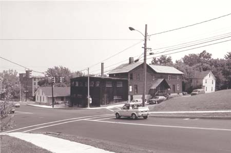 15. CORNER OF COLCHESTER AVENUE AND BARRETT STREET October 11, 2005 (18T 0644194 UTM 4927655) A traffic light has been strung across the roadway and the iron poles and streetlamps in the 1929 image have been replaced by utility poles. A Domino’s pizza shop occupies the ground floor of 6-10 Barrett Street, rebuilt in 1993 in a style reminiscent of the 1924 commercial block. and 1986 PHOTOGRAPH This photograph, taken by Thomas Visser for a proposed amendment extending the boundaries of the Winooski Falls National Register District,[1] shows the condition of the property at 485-487 Colchester Avenue, including 6-10 Barrett Street, in 1986. The 1920’s commercial block has been significantly altered. The entry has been moved from Colchester Avenue to Barrett Street and the old shop fronts have been destroyed. The parapet and bracketed mouldings have been removed, as has all of the clapboard siding. The original double hung, two-over-two sash windows on the upper story and the plate glass shop along the street level have been replaced with fixed windows. However, the form of the structure is substantially intact. Two years later, this section of 6-10 Barrett street was demolished. [1] Thomas D. Visser, “Winooski Falls Historic District, Proposed Boundary Increase, Amendment to National Register Nomination” (1986). |