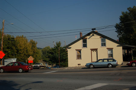 26. 495 COLCHESTER AVENUE October 3, 2005 (18T 0644165 UTM 4927710) At first glance, the building in the recent image bears few similarities to the one shown in the McAllister photograph from the late 1920s. It now has a facade two stories high, with a central doorway. There is no porch. But they are indeed the same structure In order to construct a higher bridge over the Winooski River after the flood of 1927, the grade of the road was raised to the level of the second floor at 495 Colchester Avenue. Eight feet of fill was added to the area where the street met the bridge abutment.[1] Thus the ground floor of the building is now underground on its west side. [1] Annual Report of the City of Burlington (1929), 238-239. |
