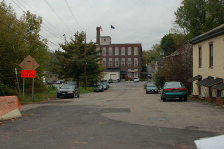 27. MILL STREET FROM COLCHESTER AVENUE October 11, 2005 (18T 0644200 UTM 4927721) Mill Street appears essentially the same in this recent image, but now it seems to be a more prosperous neighborhood The structures visible in the 1935 image are still standing. There are awnings on the lower story windows at 495 Colchester Avenue. Two poles atop the enclosed tower on the (now) Chase Mill building fly banner flags. Trees line the riverfront |