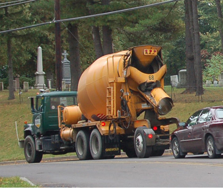 The third image shows a modern cement mixer on Colchester Avenue next to the Green Mountain Cemetery, included here as a comparison with the cement mixer in the 1929 documentation.