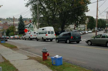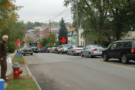 7. & 8. COLCHESTER AVENUE AT CHASE STREET (18T 0644154 UTM 4927481) and 9. CEMENT MIXER ON COLCHESTER AVENUE October 11, 2005 Note the water hydrant in the same position as in the 1929 photographs. The sidewalk and curb appear to be the same as in the older images as well. The concrete surface laid down in 1929 has been covered by several layers of asphalt paving, for the level of the road is now nearly flush with the top of the curb.