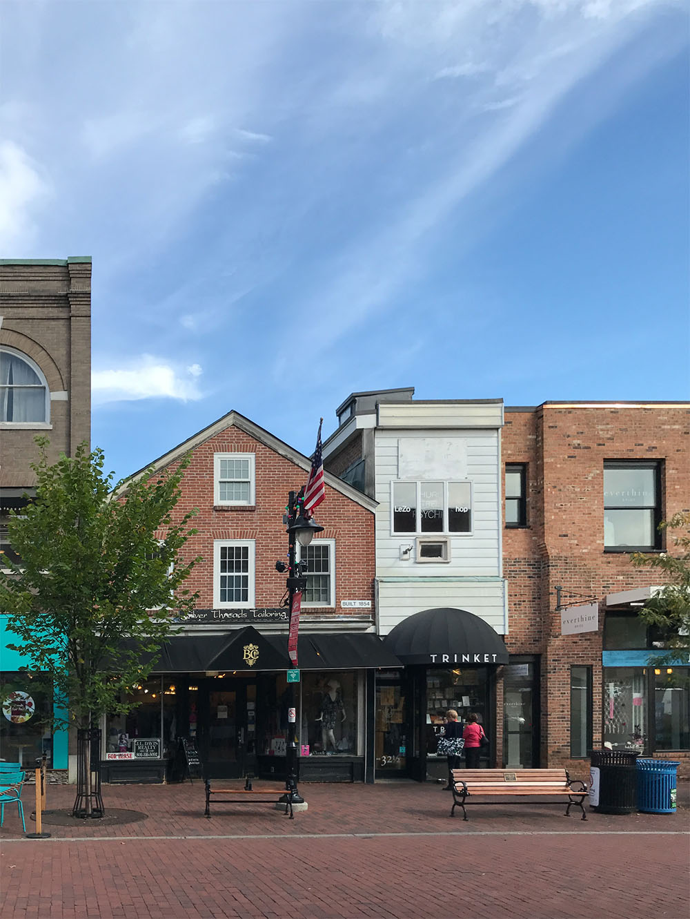 Four city blocks run north to south and house an eclectic collection of structures including businesses, churches and municipal buildings. The Upper Block of Church Street, the location of Burlington’s iconic Unitarian Church, the Masonic Temple and Abernethey’s towering Department Store, was first nominated to the National Register of Historic Places in the summer of 1976. Through the later half of the century a large-scale effort to return Church Street to its original use as a pedestrian thoroughfare came underway. During the implementation of those plans, the street was laid with brick pavers and sections of Church Street were gradually closed off to vehicular traffic. The Top Block, from Pearl Street to Cherry Street, was the final portion to be closed off. By and by, several local businesses, a few major retailers, and a variety of novelty stores, restaurants and cafes filled the street. The transition was a highly successful and the economic returns soon became evident. Thanks to the achievements of the new marketplace and the preparation that went into restoring many of the structures, the remaining contributing blocks of Church Street were also nominated to the National Register of Historic Places in 2010.