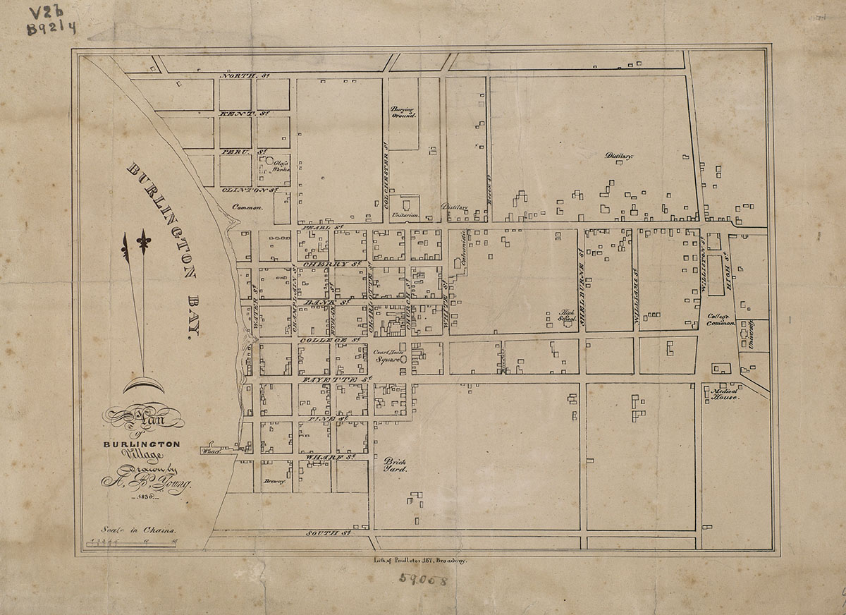 1. Ammi B. Young, Plan of Burlington Village. [map] Burlington, Vermont: 1830. Accessed through Special Collections, University of Vermont Library, October 21, 2017, http://cdi.uvm.edu/collections/item/Burlington_Young_1830.