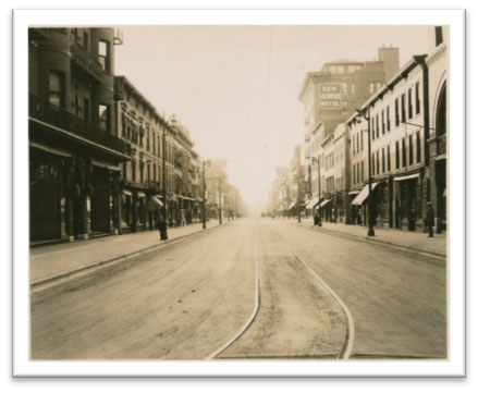 Figure 15. McAllister Photograph looking south on Church Street. View of trolley tracks. Courtesy of UVM Special Collections