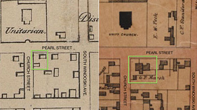 21. Sanborn Fire Insurance Map, Burlington 1869, sheet 01, Special Collections, University of Vermont, http://cdi.uvm.edu/collections/item/btvfi_1869_001 (accessed October 22, 2017)., Sanborn Fire Insurance Map, Burlington 1885, sheet 03, Special Collections, University of Vermont, http://cdi.uvm.edu/collections/item/btvfi_1885_003 (accessed October 22, 2017).
