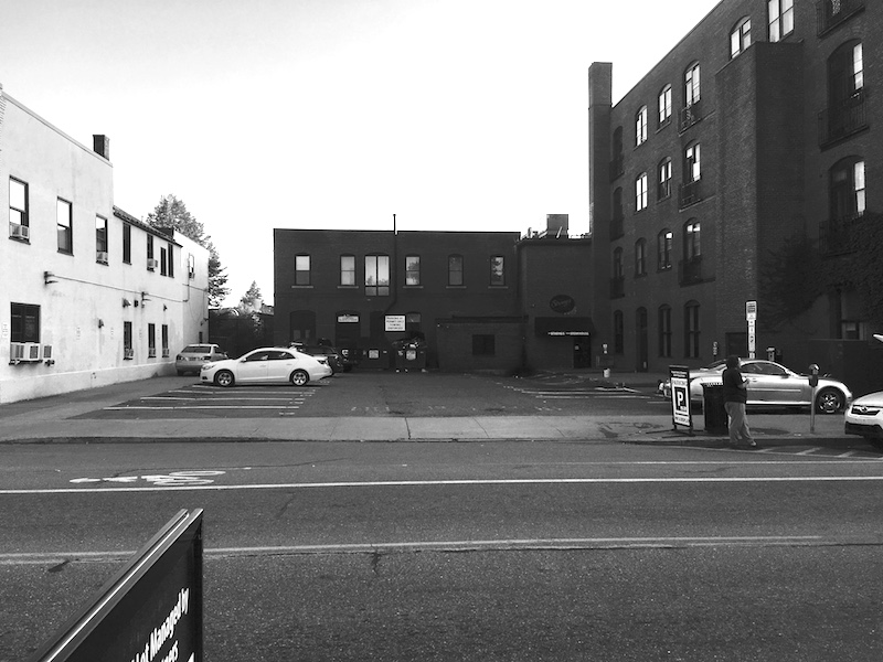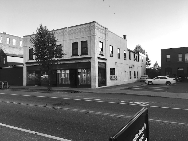One door up on 185 Pearl Street stands the Three Needs Taproom and Brewery building. At first glance this rather convoluted, dark-green-and-black building sandwiched between two conventional commercial core vernacular buildings seems odd. But if one looks closely, specifically beyond the one-story, low-eave entry vestibule, a two-story, gable-ended façade quite literally peaks over the complex. Indeed an entire two-story, L-shaped structure stands above the entire property. Standing as the oldest structure on site, one can begin to get a sense of the domestic use and scale that once permeated this city block many years ago.