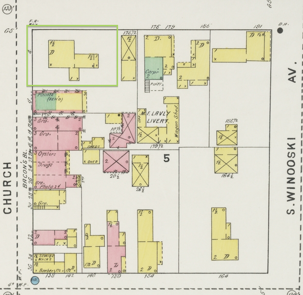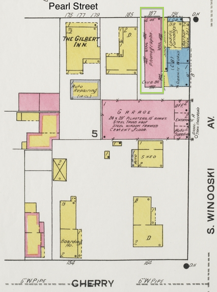The focus area for this study is the southerly side of Pearl Street between Church Street and South Winooski Avenue. By the nature of city blocks , the corner lots always extends around to the adjoining street thus parts of Church Street and South Winooski Avenue are included within this study. The modern physical addresses going west to east are: 2 Church St, 163 Pearl St., 175-177 Pearl St., 185 Pearl St., 187 Pearl St., & 191 Pearl Street. Though one can easily find the properties discussed in this study with a simple Google search, it is important to note the fluidity of addresses through the passage of time. For example, lets follow the Sanborn Maps Company’s listing of 185 Pearl Street. In 1885, the property lists as 185 Pearl Street.1 A map produced in 1900 lists the property as 183 Pearl Street.2 Six years later, the property is listed again as 185 Pearl Street with “183” as its former listing.3 Unless otherwise noted all buildings and properties discussed correspond with current physical addresses. Additionally the order of properties discussed follows the west to east direction aforementioned in the study area.