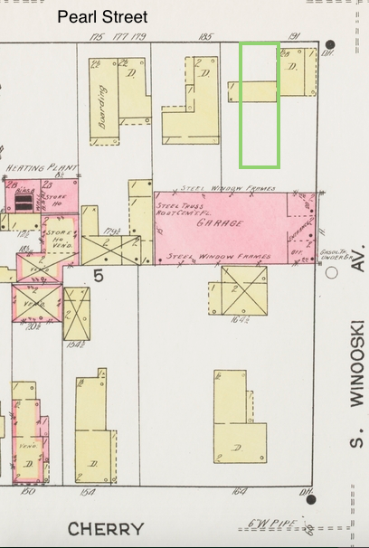 The late 1920s and early 1940s saw the most dramatic physical change to the property. During this span a one-story, cement-block building for commercial use was constructed abutting the 175-179 Pearl Street building. Detached from the older structure, the gap between the two structures created a long, narrow, serpentine walkway from the sidewalk on Pearl Street to the back of the lot. Part of which still exists behind the metal gate on modern façade. The other major structural change is a one-story, wood-frame addition extending the façade to the sidewalk and east to the 187 Pearl Street building. No longer a singular dwelling, this property is by 1942 a mix of commercial and residential purposes.40 Outside a few cosmetic exterior modifications the structural changes of this period provide us with the current complex that exists today.