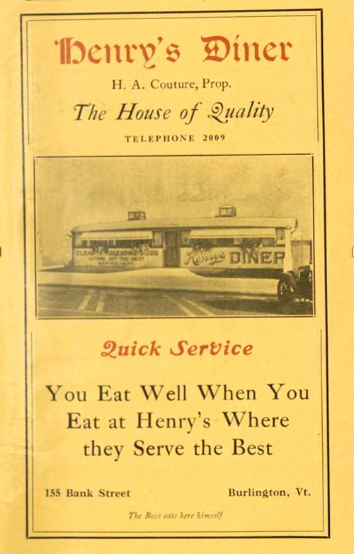 3. “Henry’s Diner in New Design Opens Tomorrow,” Burlington Free Press, June 11, 1935, 5, newspapers.com.