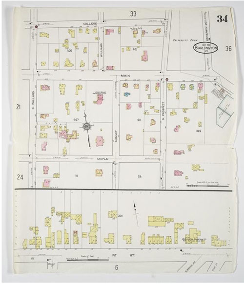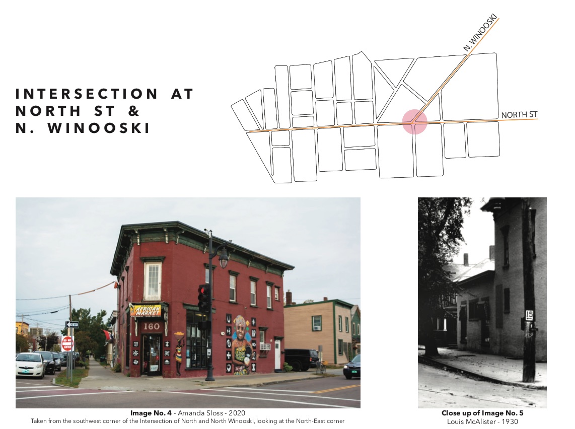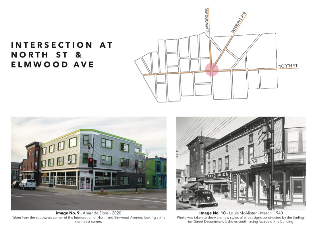 The selected area of North Street between North Avenue and North Winooski Avenue lies within the Burlington neighborhood referred to as the “Old North End,” which is a section of land north of the city’s center that was developed in order to house the cities lower-income workers, specifically immigrant populations, during the period following the Civil War.