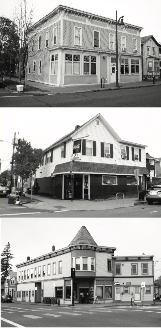 The structure on the northwest corner of North Street and North Winooski Avenue, marks the eastern end of the North Street commercial district. As shown in image No. 1, the building still appears in its original Queen Anne style and its North Street facade has only changed slightly. The building’s ground-level entrance is aligned perfectly with the street corner and is shaded by a covering created by the second-story oriel window, directly above - this window has four connected, symmetrical sections and is capped with cone-shaped roof. The lot was home to a “store” as far back as 1869, according to the F.W. Beers map. However, the structure which still stands today, was built in 1898 by Dennis Bourne as the location for his creamery and grocery.