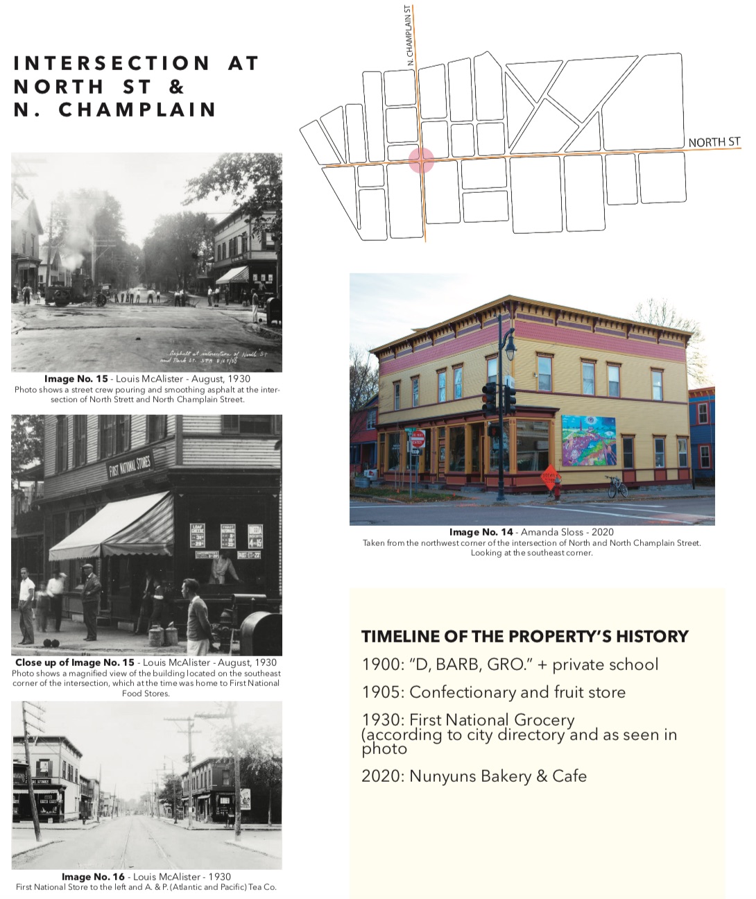 Currently the bottom floor of the building is occupied by Nunyuns Bakery & Cafe. This intersection is now home to many ethnic businesses owned by a new wave of immigrants in the city. Right off of the corner, on North Champlain Street, is a Himalayan Food Market and across the street on the northwest corner there is an oriental marketplace food store, Thai Phat. Opposite from Nunyuns, on the northeast corner, lies Saigon Kitchen and “Bella Kay Home Goods Asian Store.”