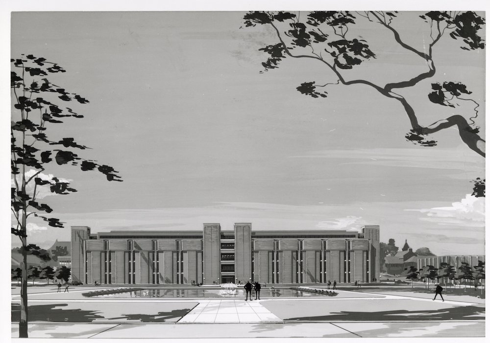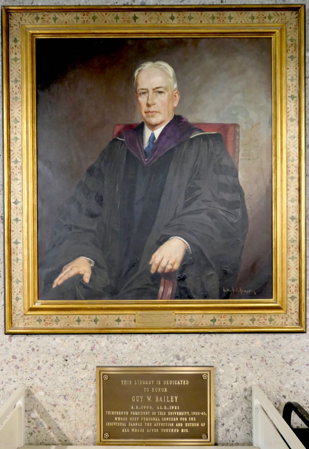 Rendering of "Guy W. Bailey Memorial Library," Roland M. Whittier, architect. UVM Planning Services The main University of Vermont library was built in two phases. The first part was designed in 1960 by Roland M. Whittier, and the second part of the library, dedicated to David Howe, was designed in 1980 by architect Robert Burley.1 Originally the Howe Library was named after former UVM President Guy W. Bailey. After serving as Vermont’s secretary of state from 1908 to 1917.2 Bailey started working in the UVM administration in 1917. University of Vermont’s 12th president, Guy P. Benton, appointed Bailey as the university's comptroller which effectively combined the functions of treasurer, register, superintendence of building and grounds, and president administrative assistance into one role.3 Bailey was a man of many interests and was ambitious in what he hoped to achieve for the university as president. When Bailey took office as UVM president in 1920, the First World War had just come to an end and, as a result, the campus required expansion to accommodate the veterans who would come to UVM. Bailey helped expand UVM with the 1921 purchase of the land on South Prospect Street that became the Redstone campus.4