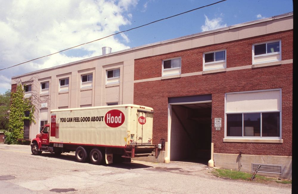 Carrigan Dairy Science Building west entrance, July 2005. Photo by Thomas Visser The Pritchett Associates report goes into great detail regarding the building’s design, citing its as “one of the best of the few existing examples of Moderne architecture in Vermont.” Distinctive architectural features included “glass block, multi-story continuous vertical windows at each stairwell, intact cast stone that defines the cornice and belt-course, window trim, the wide pilasters that flank the glass block windows, and fluted keystone over the main entrance on the north elevation.” Interior details included “terrazzo flooring in stairhalls, steel stairs, and natural finish birch doors and built-in cabinetry.”9 The building’s significance to the UVM campus relates both to serving the changing needs of the dairy and food processing industry, and to the beloved Dairy Bar housed within. Industry changes continued to impact dairying in Vermont through the years. Pritchett notes that at the time of their construction “the three new buildings were state of the art research facilities that allowed the agricultural college to better pursue its purpose as a fully effective and integral part of the agricultural industry and life of the state.”10 Along the way, adaptations were made to keep pace with the times. According to one study of the industry, when the Dairy building was built in 1949, “most dairy farms were small and diverse. By the 1960s, massive “agribusiness” had been born.”11 By 1997, Carrigan Dairy underwent a major renovation in order to house the new Center for Food Science, with one professor noting that the updated building would bring research like his “into the 21st century.” 12