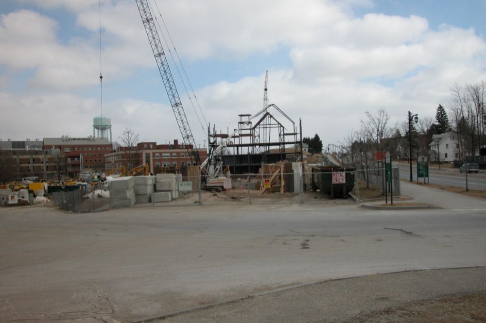 Dudley H. Davis Center under construction, view looking east, March 2006. Photo by Thomas Visser The building was designed by WTW Architects, with interior design by TruexCullins & Associates.8 The project completed in 2007 and the ceremonial dedication took place on October 5th of that year.9 In keeping with the environmental goals of the Davis Center project, 94% of the rubble from Carrigan Dairy’s demolition was recycled, with brick and concrete slabs being re-purposed to form the foundation of Davis. The project recycled another 92% of its own construction waste.10 The Davis Center project also sought to advance the goals of social justice, and student life and learning. To that end, the building put a focus on physical accessibility, provided gender-neutral bathrooms, and used named spaces to promote the stories of diverse members of UVM’s alumni. A goal of actively seeking student input in the decision-making process around space and services.11
