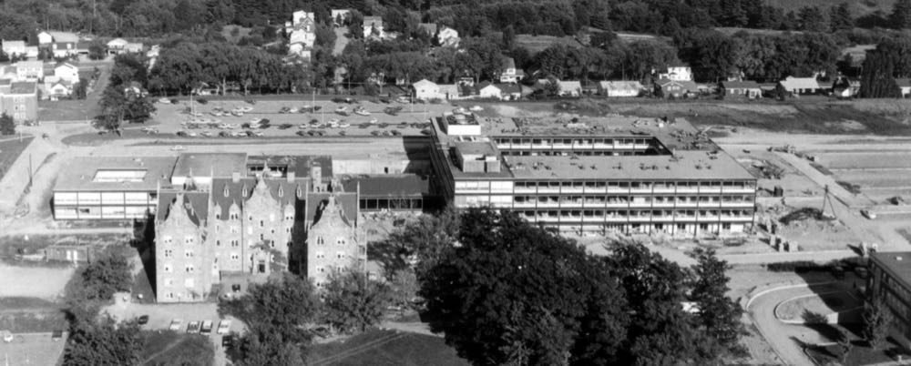Given Health Sciences Building (right), Converse Hall (center) and Soule Medical Alumni Building (left). Source: UVM Archives / UVM Landscape Change Program