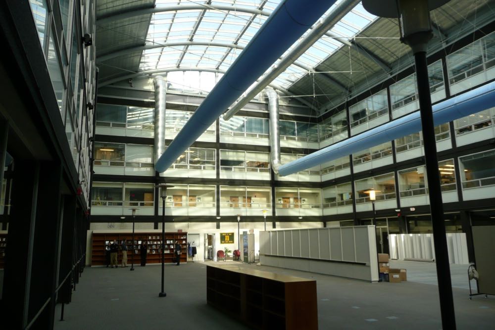 Given Health Sciences Building interior view towards inner courtyard, May 2000. Photo by Thomas Visser In 2007, Given's innner courtyard gardens were removed, a slab floor was poured and a glassed roof was installed to provide space for UVM Medical College's library. In 2010, the former courtyard space was filled with a new 31,000 square foot structure.2