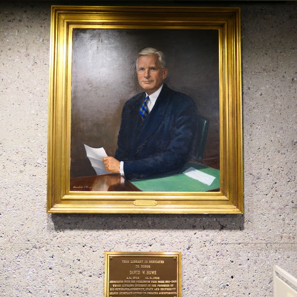 Portrait of David W. Howe in Howe Library. Photo by Thomas Visser, 2021 Notes1. David W. Howe Memorial Library, UVM Campus Treasures, accessed at http://www.uvm.edu/~campus/library/library.html 2. Office of the President : University of Vermont,” September 14, 2017. https://web.archive.org/web/20170914172846/https://www.uvm.edu/president/formerpresidents/?Page=bailey.html. 3. “Former President Guy W. Bailey.” https://www.uvm.edu/trustees/former-president-guy-w-bailey. 4. Ibid. 5. T.D. Seymour Bassett, The University of Vermont: The First Two Hundred Years (Hanover, NH: University of Vermont, 1991), 140. 6. Sidney B. Smith to Mr. Morrison C. Haviland, February 24,1960, Office of the Director of Libraries, General Subject Correspondence, University of Vermont Special Collections. 7. Ralph Hill, “Bailey/Howe Library Dedication,” Dedication Speech: Salute to David Howe, June 20, 1980. 8. Getz, Robert. “Ceiling Fire Damages UVM Library.” Burlington Free Press, 22 March 1990. 9. The University of Vermont. “Q&A: The Renaming of UVM’s Library.” Accessed November 5, 2021. https://www.uvm.edu/news/story/qa-renaming-uvms-library. |