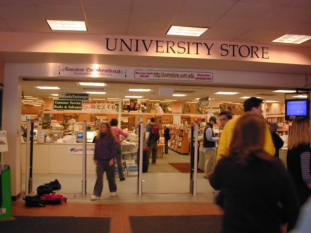 University Store interior, 2000. Photo by Thomas Visser One year shy of its normal eligibility for the National Register of Historic Places and with its design integrity diminished by changes to significant character defining features of the north elevation, the University Store building was demolished in 2007 as part of the Dudley Davis Student Center project, where the UVM University Store is now located.