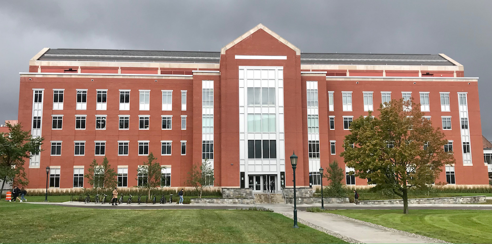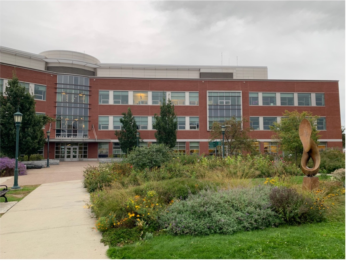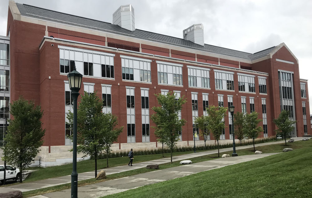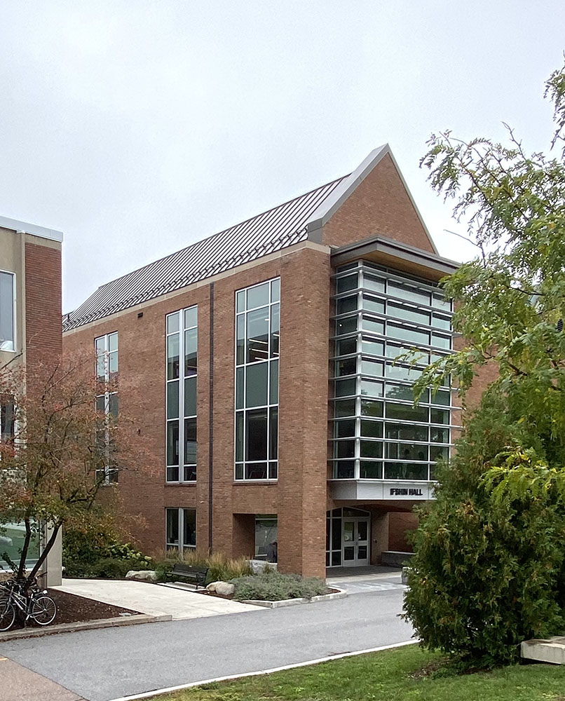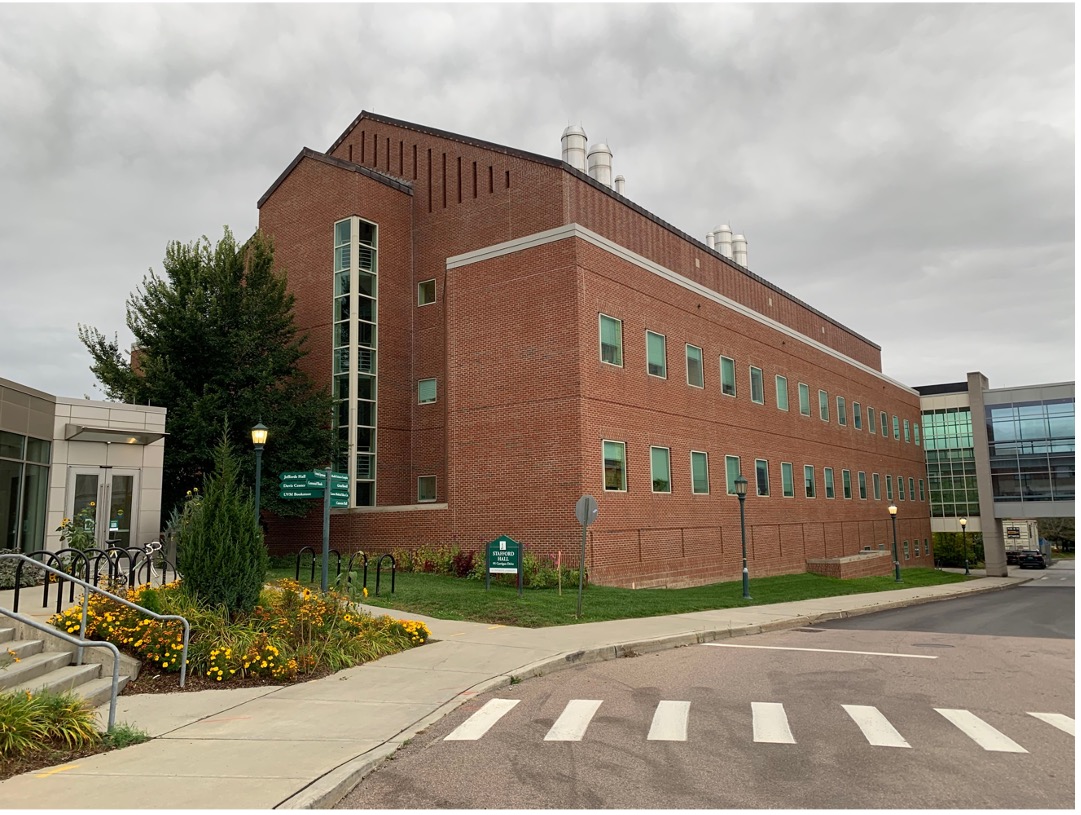 Ishfin Hall (2017)By Erin BriggsAs one of the more recent building on the University of Vermont campus, Ifshin Hall maintains a similar postmodern likeness with its parent building, Kalkin Hall. Ifshin Hall was built in 2018, with construction finishing in August of that year. It is also known as the Kalkin Hall addition or the Grossman School Expansion; hinting at its reason for being built. To accommodate the growing student population in the school of business, the University believed they needed to expand Kalkin Hall. The school wanted to keep up with their drive for excellence by enhancing student facilities.1 This is consistent with the University’s goal of providing a quality education for students, with many learning and real life a opportunities.2 With this addition, they also hoped to accommodate the anticipated growth in student enrollments, especially graduate level programs.3