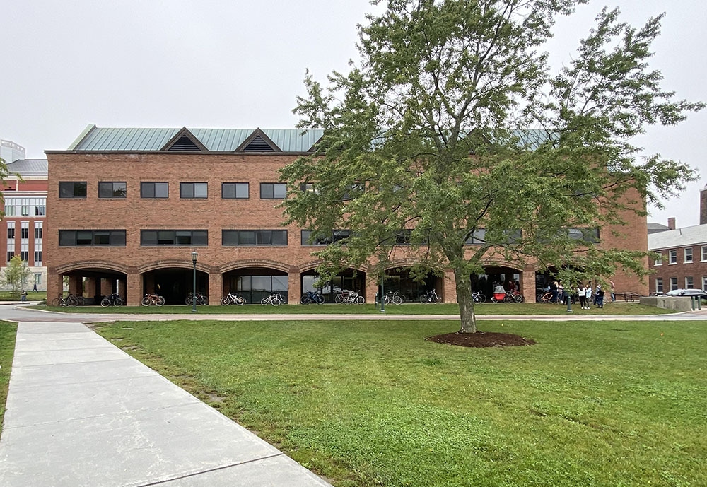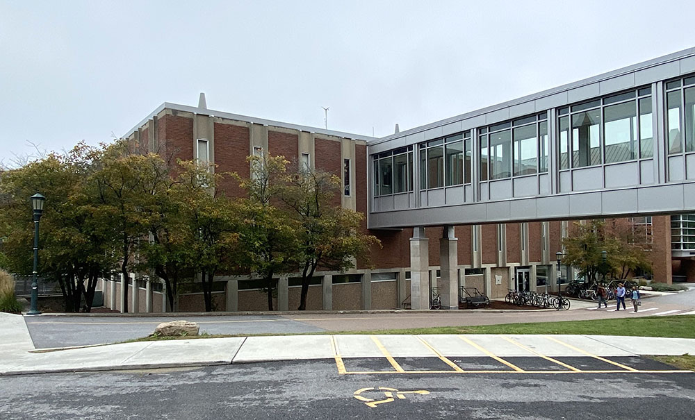 Kalkin Hall (right) and Ishfin Hall (left), view looking northwest. Photo by Erin Briggs, 2021 Notes1. “It’s a Boom Time for Opening of Kalkin Building,” The University of Vermont Record, 1988. 2. Molly Walsh, “Fleming Show Features Top Vermont Architects,” Burlington Free Press (1989), 10D. 3. Ibid. 4. University of Vermont, Ariel vol. 102 (1989), accessed Sept. 19, 2021, https://cdi.uvm.edu/book/uvmcdi-48646#page/14/mode/2up. 5. University of Vermont, Ariel vol. 110 (1997), 68, accessed on Sept. 19, 2021, https://cdi.uvm.edu/book/uvmcdi-52343#page/68/mode/2up. |