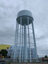 Burlington Water Tower (1954)By Julia Brown Just behind Jeffords Hall and Stafford Hall is the Burlington water tower, which was constructed in 1954 and has a capacity of half a million gallons of water. This tower is owned by and under the jurisdiction of the city of Burlington. From 2019 through mid-2021, the water tower underwent a restoration and maintenance project. This project required the removal tower’s original exterior paint from 1954, as the paint contained traces of lead.1