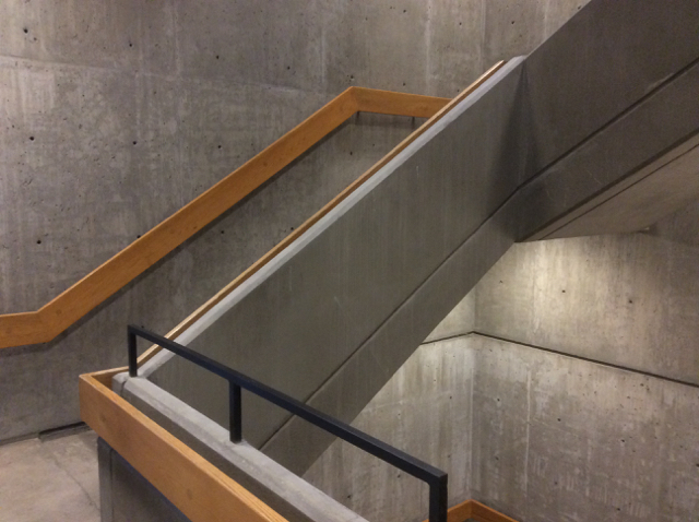 Cook Physical Science Building and Angell Auditorium (left). UVM Special Collections Cook Physical Sciences Building - which began construction in July of 1969,1 and was completed in 1971 - was designed by the architectural firm Freeman French and Freeman.2 The building is composed of reinforced concrete and brick, though its architectural style is not straightforward. While the exterior is not bare concrete, the heavy massing, recessed vertical windows, exposed concrete stairwells and concrete coffered ceilings (hinting at the vaulted concrete coffered ceilings of the 1976 Washington DC Metro) point to the Brutalist style.3An alternate design suggests an even stronger influence, showcasing the thin vertical windows and heavy massing that characterize Brutalist buildings. It is possible that the brick exterior may have been a concession to align with the neighboring buildings and the aesthetics of the campus as a whole.