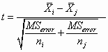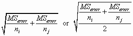 Notice that these formulae, and those that follow, assume that you carry out separate calculations of the error term for each pair of samples. That is because ni and nj will change as you change the two groups you are comparing. This is a pain in the neck, but you don’t have much choice.
