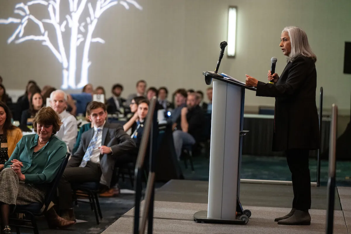 Following the networking luncheon, SI-MBA students, as well as undergraduate Grossman School students, and faculty had the opportunity to learn more about the businesses earning recognition this year in a brief ceremony followed by an engaging panel discussion. A brief question-and-answer session followed, guided by Dr. Sharma, where anecdotes about the creations of these businesses were shared, family leadership dynamics across generations were explored, and the panelists’ own UVM experiences were reflected upon.