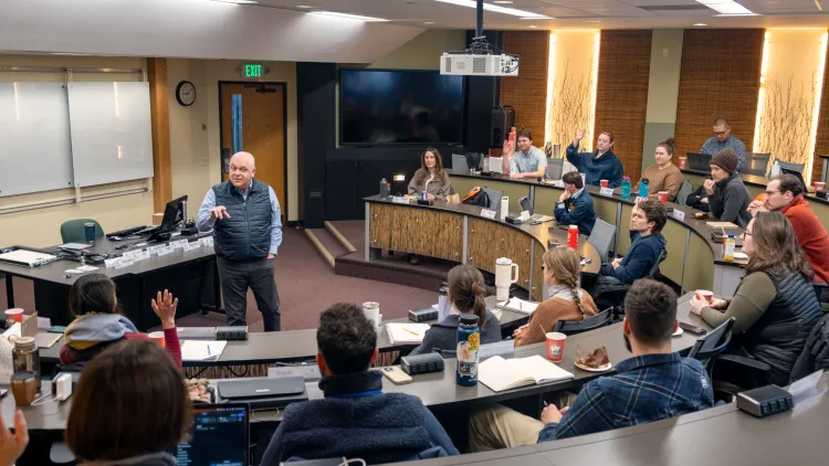 Last month, Sustainable Innovation MBA (SI-MBA) program students returned from winter break and were treated to their first Innovator in Residence speaker, Jed Davis, vice president of strategic engagement and sustainability at Agri-Mark/Cabot Creamery Cooperative. Jed spent the day sharing the story of what led him to his position as sustainability director and expounded about the challenges he faces in his role that are ever changing.