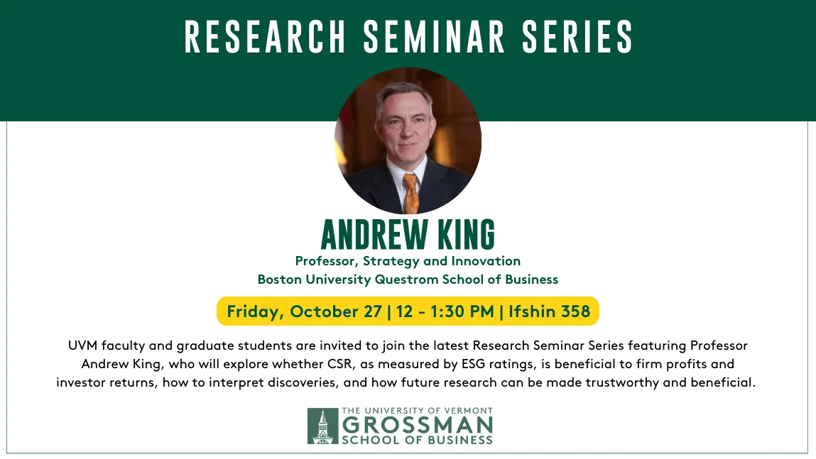 As part of a top public research university, research in the Grossman School of Business impacts theory, practice, and society by addressing economic, social, and environmental challenges in a sustainable global economy. Our faculty researchers are nationally recognized thought leaders in sustainability, entrepreneurial thinking, and family business.
