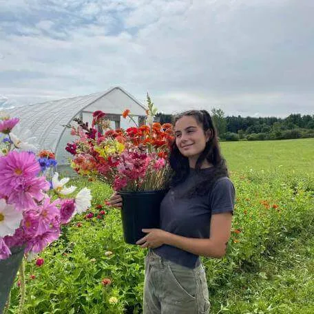 With intersecting passions of small-scale veggie growing, ecological storytelling, and community care, Bella is entering the Food Systems Masters program on the accelerated track while finishing up her undergraduate studies this fall at UVM. She is currently a farmer at Dandelion Farm, founder and the head of Sage Magazine, and co-chair of Slow Food UVM. When not farming, in school, or working on Sage, you can find Bella cooking, backpacking, and swimming in the rivers.