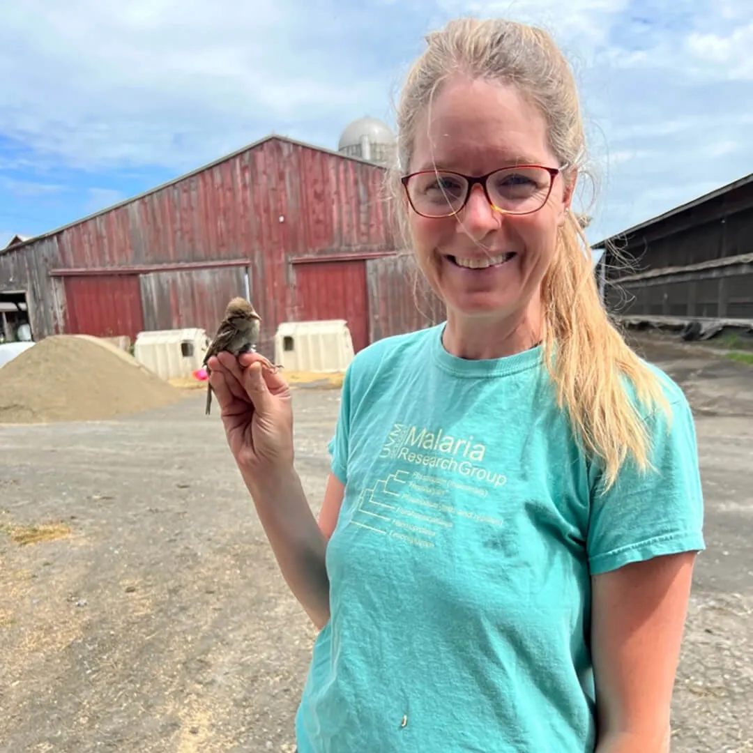 Ellen has been working with wildlife since childhood, having first started as a volunteer at a wildlife center. Her research interests center on host-parasite ecology and evolution, wildlife disease, avian biology, and conservation. Through broad collaboration and the integration of field, microscopy, and genetic methods, she has pursued the study of pathogen diversity, distribution, transmission, and host switching in wildlife and vector (mosquito and tick) hosts worldwide. Currently, her work focuses on pathogen spillover into naive host taxa including collection animals at zoological parks, host species of conservation concern, non-native wildlife species (including the House Sparrow in Ellen’s hand in picture), and non-adapted wildlife species at northern latitudes. When not chasing down new pathogens, Ellen can be found playing with her family or pack of rescue dogs.