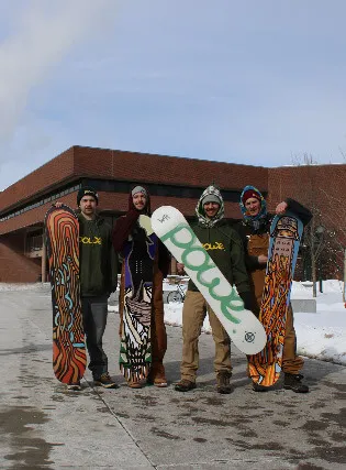 A love of snowboarding, a passion for drawing, and a flair for entrepreneurship has helped to determine the future for Adam Vindigni ’15 and four other UVM students who are on a mission to create an eco-friendly snowboard company based in Burlington, VT.