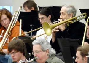 The setting was the same -- the cavernous Southwick Ballroom on Redstone campus -- but it was no ordinary rehearsal of the UVM Jazz Ensemble, the university's first-string student big band. Witness the collection of 30-plus jazz fans, students, and music faculty, including trumpeter Ray Vega, flutist Patricia Julien, guitarist Joe Capps, and trombonist Rick Davies, who were seated casually in a jumble of chairs and desks strewn around the former gym.