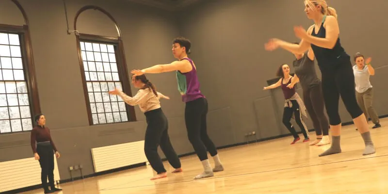 By late Sunday afternoon, students in the new Cohen Hall Dance Studio were finishing up a long day of rehearsal on different segments of Blue’s piece called “DUSK.”