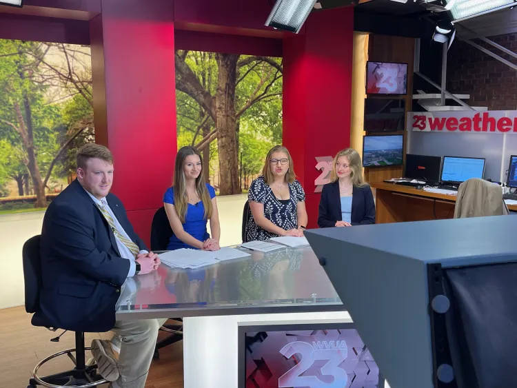 WVUA 23, the commercial television station, broadcasts to the public communities of West Alabama, the Birmingham DMA, and the University of Alabama with news, weather, sports, and entertainment content. Student journalists collaborate directly with 15 professional staff who work in news, sports, and weather.