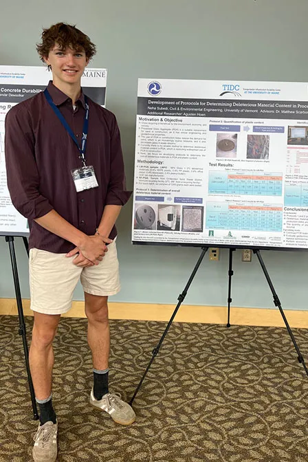 How did this opportunity impact your studies at UVM? This opportunity gave me valuable experience in the process of research and provided me with an understanding of how a university curriculum applies to real-world problems. I was able to participate in the project’s technical advisory committee meeting with people from the Vermont Agency of Transportation, Vermont Agency of Natural Resources, and Chittenden Solid Waste District. I was also given the opportunity to attend a conference held at the Transportation Infrastructure Durability Center at the University of Maine. I am continuing this research in the fall through the College’s REU program.